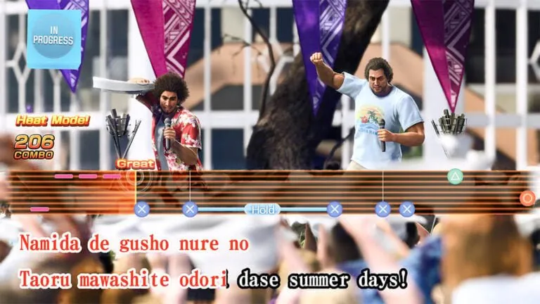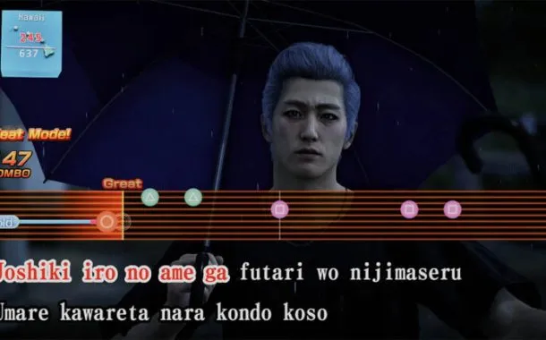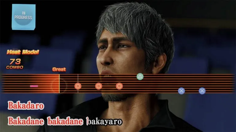 از نام این مینیگیم مشخص است که به چه شکل انجام میشود. با دوستان خود گپ بزنید، نوشیدنی بنوشید و آخرین آهنگها را در بار محلی کارائوکه بخوانید! گفتنی است که انبوهی از آهنگهای جدید، از جمله آهنگ مورد علاقهی قدیمی کازوما کیریو یعنی Baka Darou نیز وجود دارد.