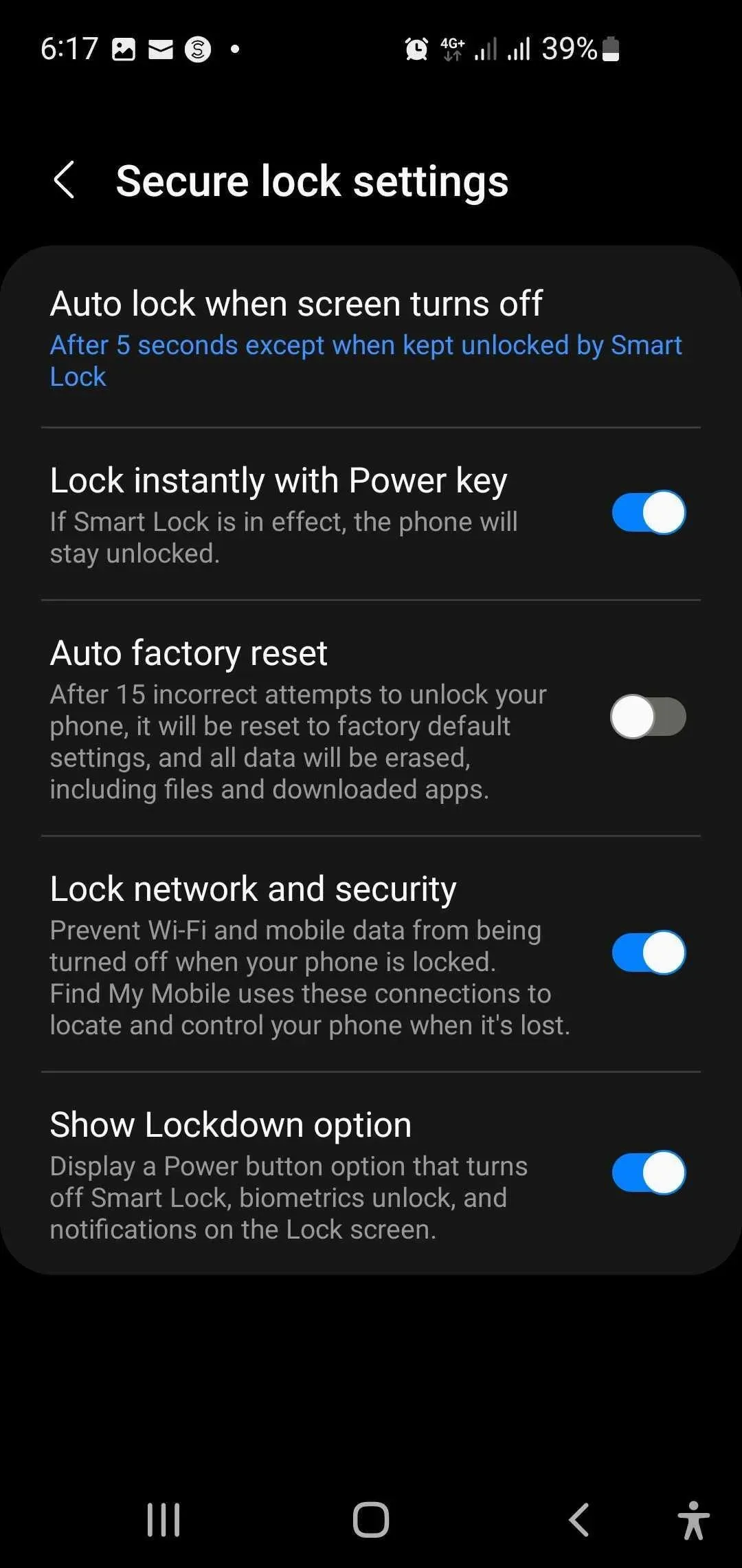 برای مثال، در گوشیهای سامسونگ، باید به «تنظیمات» (Settings) > «صفحه قفل» (Lock Screen) > «تنظیمات قفل ایمن» (Secure Lock Settings) بروید و پین دستگاه خود را وارد کنید تا به تنظیمات قفل ایمن برسید. سپس گزینهی «نمایش گزینه حالت قفل شده» (Show Lockdown) را تغییر دهید تا یک دکمهی «حالت قفل شده» (Lockdown Mode) را به منوی پاور اضافه کنید.