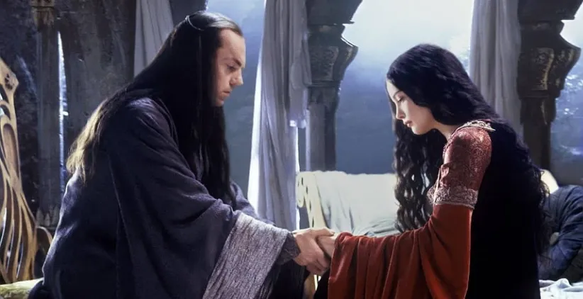 چه در صحنهی افتتاحیهی فیلم که جنگ بزرگ در برابر سائورون را نشان میدهد، یا ریوندل آرام و دلپذیر، یا جنگل لوثلورین، اِلفهایی که میبینیم همیشه رفتاری رازآلود آمیخته با غم و اندوه دارند. در برابر ارباب تاریکی با جدیت و قدرت مبارزه میکنند، در شورای الروند (که قرار است در آن سرنوشت مردم آزاد سرزمین میانه رقم بخورد) موقر و باشکوه هستند، و وقتی خبر سقوط گندالف را میشنوند نوایی تأثیر گذار در رثای او مینوازند و میخوانند.