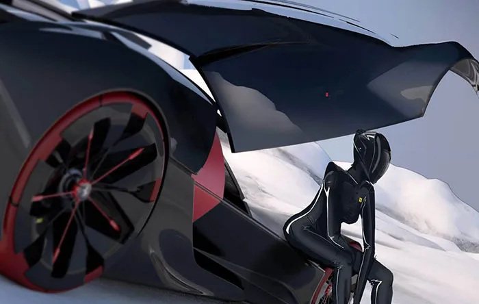 طرحی که مشاهده میکنید، برندهی مسابقهی طراحی شرکت «فراری» (Ferrari) است. این طرح که «مانیفستو» ( Manifesto ) نام دارد در سال ۲۰۴۰ به یک خودروی واقعی تبدیل خواهد شد.