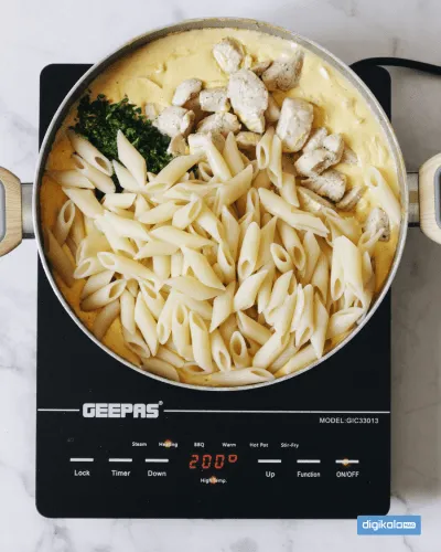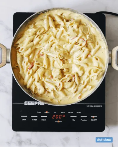 اگر پاستا بیش از حد غلیظ بود میتوانید با اضافه کردن کمی شیر به نتیجهی دلخواه برسید.