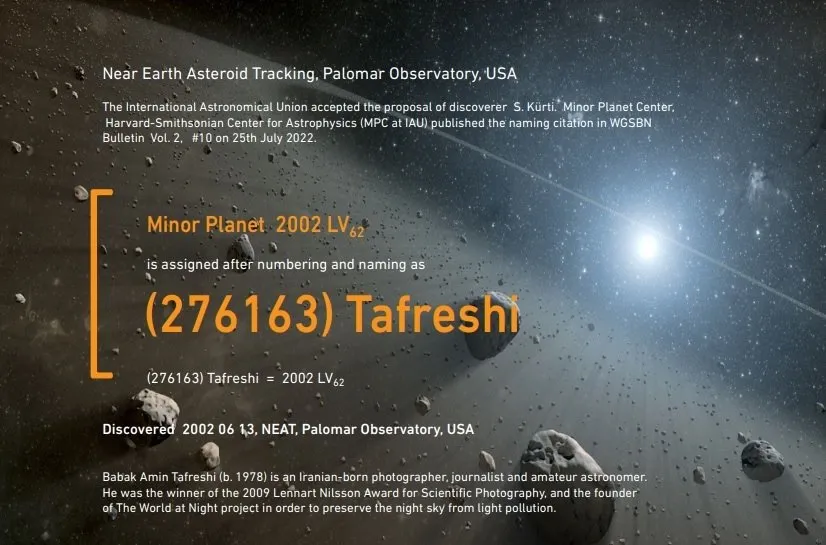 یک سیارک به نام بابک تفرشی، عکاس ایرانی نامگذاری شد