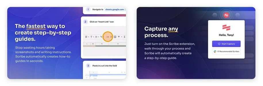 - Scribe: یکی از بهترین و محبوبترین افزونههای گوگل کروم که مبتنی بر هوش مصنوعی است و در انجام دو کار میتواند به کاربران کمک کند؛ مستندسازی فرایند کاری و همچنین ایجاد راهنمای قدم به قدم که برای آموزشهای مختلف میتواند فوقالعاده کاربردی باشد.