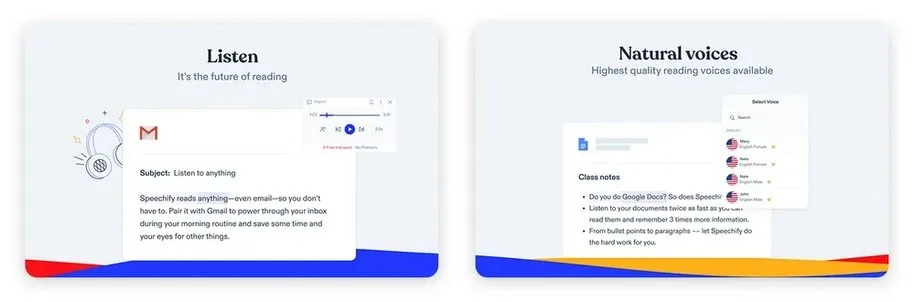 - Speechify: برخلاف Transkriptor، کار این افزونه تبدیل متن به صداست. به این صورت که شما متن مورد نظر را به آن میدهید و این افزونه هم آن را برایتان میخواند.