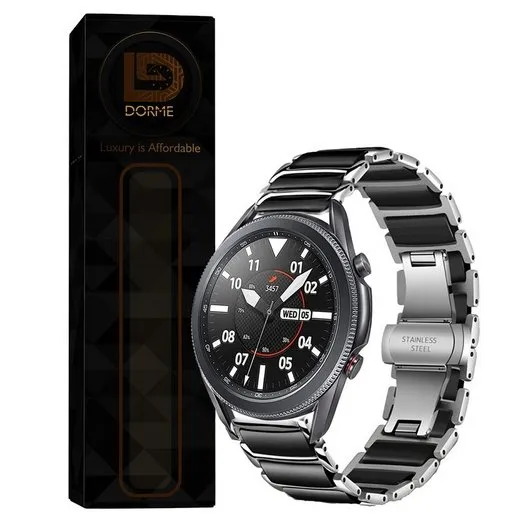 بند درمه مدل Majestic یکی از گرانقیمتترین و در عین حال زیباترین و جذابترین بندهایی است که تاکنون برای گلکسی واچ 3 مدل 41 میلیمتری طراحی شده است. این بند در حال حاضر در رنگهای طلایی، برنجی و مشکی در دسترس قرار دارد و برای کسانی مناسب است که اجناس لوکس را میپسندند و برای جزئیات هم ارزش قائلند. Majestic از سرامیک ساخته شده و ضد حساسیت است، کیفیت و ماندگاری بالایی داشته و طیف گستردهای از رنگبندیها را پیش رویتان میگذارد. این بند هم برای آقایان مناسب است.