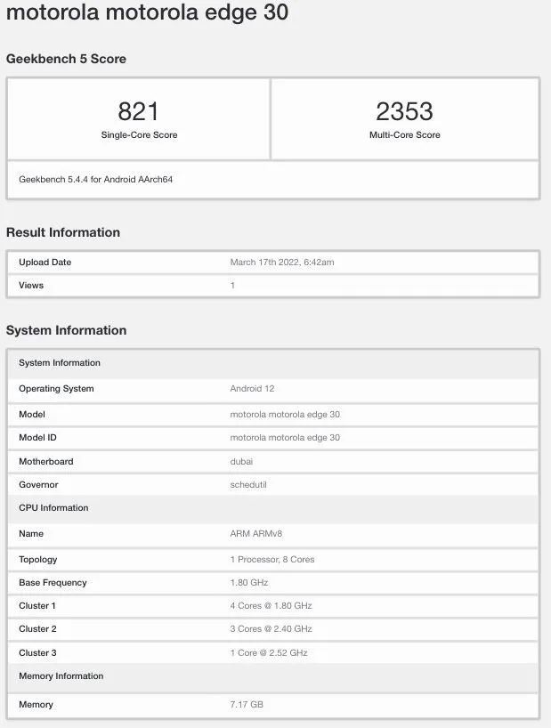 موتورولا Edge 30 با اسنپدراگون 778G در گیکبنچ دیده شد