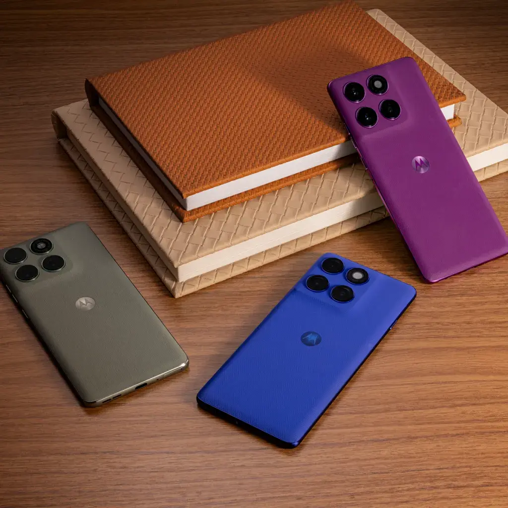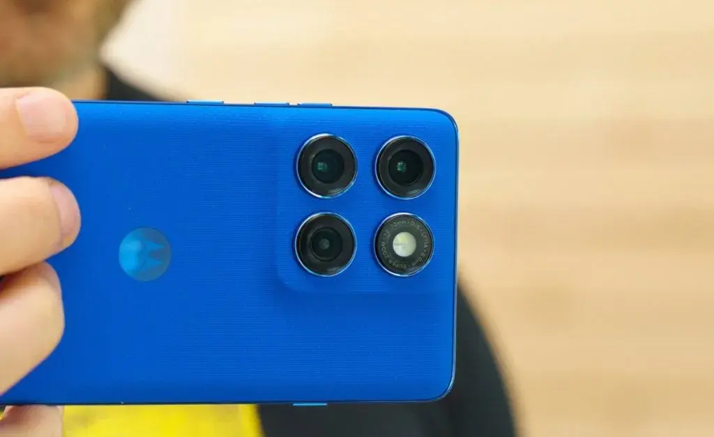 قاب پشتی همانند پنل جلویی بهصورت چهارطرف خمیده ساخته شده و بهصورت یکپارچه تا اطراف فریم امتداد مییابد و تنها در قسمت ماژول دوربین کمی برجسته میشود. این طراحی باعث میشود گوشی هم خوشدست باشد و هم ظاهری مدرن داشته باشد. رنگ Dazzling Blue بافت نایلونی، لمس خاصی شبیه پارچه ایجاد میکند و نسخههای چرمی نیز به دلیل اصطکاک بیشتر، چسبندگی و کنترل بهتری در دست دارند. یکی از نکات مثبت مهم این است که تمامی رنگها و متریالهای انتخابی موتورولا کاملاً در برابر لک و اثر انگشت مقاوم هستند.