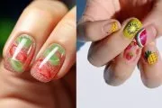 یکی دیگر از ایدههای خوبی که برای طرح ناخن میتوانید امتحان کنید طراحی میوههای بهاری و تابستانی روی ناخنهایتان است. میوههایی مانند بلوبری، توت فرنگی، گیلاس، هندوانه و لیمو علاوه بر اینکه رنگ زیبایی دارند میتوانند به روشهای مختلفی روی ناخنها کشیده شوند. حتما لازم نیست روی تمامی ناخنهای خود طرح بکشید و میتوانید میوهها را در کنار لاک ساده، کهکشانی یا ایربراش امتحان کنید.