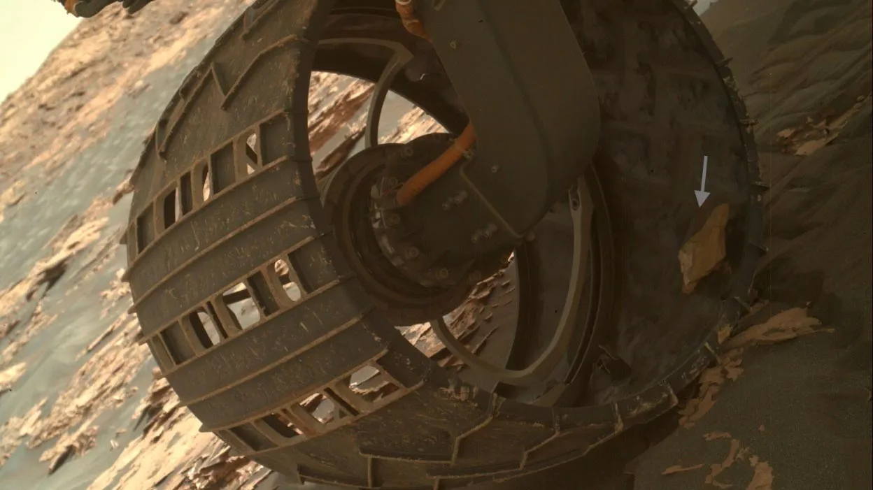 یک مهمان ناخواندهی سنگی که چند ماه پیش وارد یکی از چرخهای مریخنورد پشتکار شد، هنوز از کاوشگر مریخ سواری میگیرد.