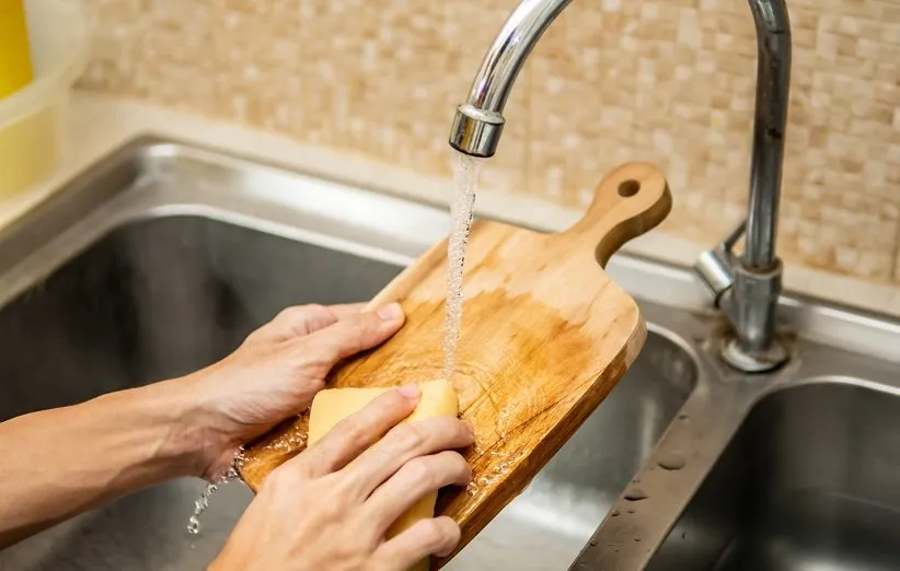 برای اینکه تخته گوشت چوبی خود را حین خانهتکانی تمیز کنید، یک واحد آب لیموترش را با دو واحد جوششیرین مخلوط کنید و خمیر به دست آمده را روی تختهگوشت بمالید و بعد از ۱۰ دقیقه آن را بشویید.