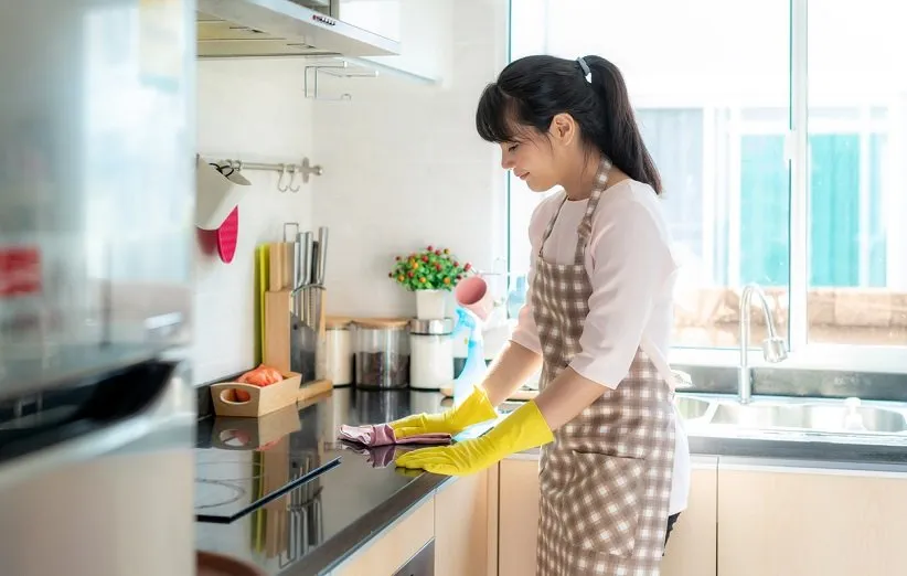 تمام کاری که باید بکنید این است که سرکه را روی سطح پیشخوان چوبی آشپزخانه اسپری کنید و بعد یک دستمال خیس شده با آب گرم روی آن بکشید. از تمیز کردن پیشخوان مرمر با سرکه خودداری کنید.