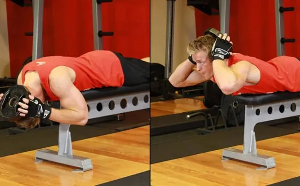 شما میتوانید این تمرین فوقالعاده ساده را در خانه یا در باشگاه انجام دهید. تنها کاری که باید انجام دهید این است که چیزی صاف و راحت برای دراز کشیدن پیدا کنید که به شما اجازه دهد سرتان را از لبهی آن آویزان کنید. یک تخت مناسب این کار خواهد بود اما یک نیمکت بدنسازی احتمالا بهترین گزینه خواهد بود. کافی است که به پشت دراز بکشید و در حالی که سر خود را کاملا از لبه خارج کردهاید، به آرامی آن را تا جایی که می توانید به عقب پایین بیاورید و سپس به آرامی آن را بالا بیاورید. این کار را تا جایی که میتوانید (30 تکرار) و طی 3 ست انجام دهید. اگر میتوانید سه ست 30 تایی را به راحتی و فقط با وزن سر انجام دهید، میتوانید یک وزنهی کوچک را به تمرین اضافه کنید.