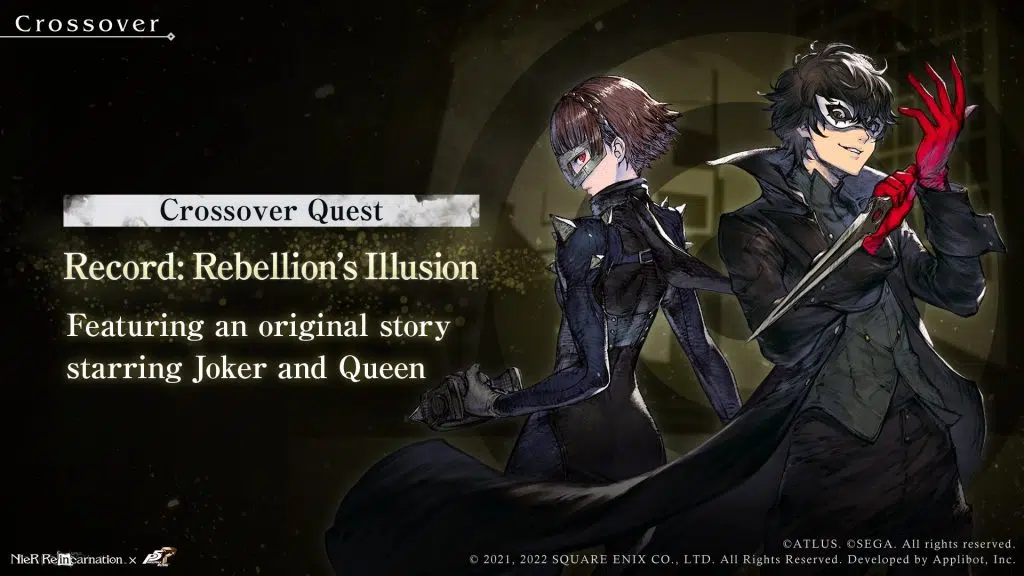 دو بازی پرسونا 5 رویال (Persona 5 Royal) و نیر: تناسخ (NieR: Reincarnation) از عناوین پرطرفدار در سبک نقش آفرینی ژاپنی (JRPG) هستند. حال همکاری این دو بازی با یکدیگر میتواند یک رویداد بسیار جالب را ایجاد کند. به همین دلیل دو شرکت اتلوس (Atlus) و اسکوئر اینکس (Square Enix) تصمیم به همکاری گرفته تا دو بازی مشهور خود را باهم ادغام کنند.