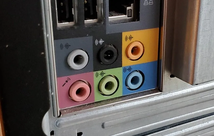 مطمئن شوید که همهی کابلهای صدا (و برق) به درستی به سیستم شما وصل شدهاند. پیشنهاد میکنیم که همهی وسایل صوتی خود را از برق بکشید و دوباره به آن وصل کنید، فقط برای اینکه مطمئن شوید که اتصالات خروجی شل نیستند. اطمینان حاصل کنید که کابلهای صوتی را به پورتهای مناسبی وصل کردهاید. به طور کلی، دستگاههای صوتی باید به پورت سبز رنگ که گاهی اوقات آیکون هدفون دارد، متصل شوند.