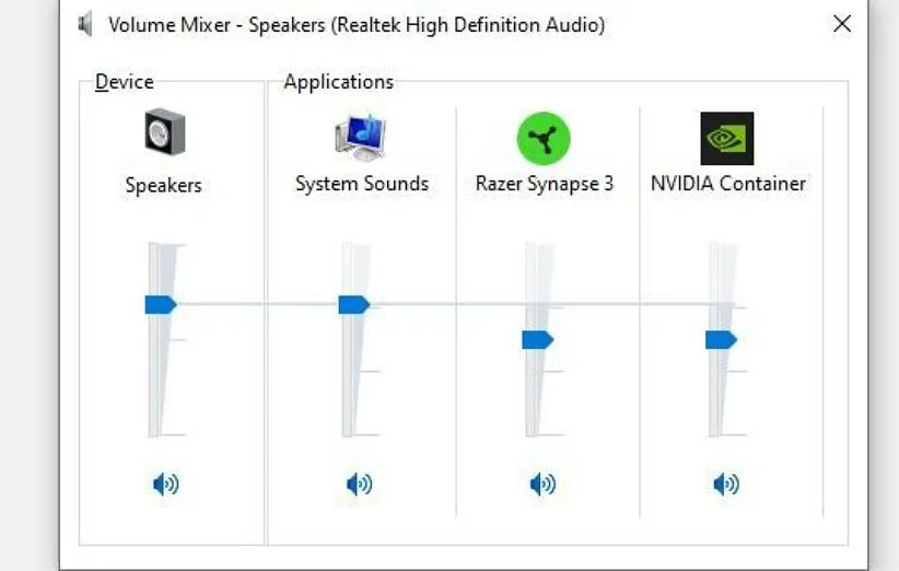 پس از انجام این کار، روی همان آیکون صدا کلیک راست کرده و گزینهی Open Volume mixer را انتخاب کنید تا سطح صدای فعلی را برای همهی برنامههایی که صدا دارند، مشاهده نمایید. در صورت نیاز، میتوانید سطح صدای این برنامهها را تغییر داده و بررسی کنید که به اشتباه بیصدا نشدهاند یا سطحشان آنقدر کم نباشد که شنیده نمیشوند. اگر صدایی از سیستم خود میشنوید اما سطح صدا بسیار کم است، ممکن است نیاز به عیبیابی سیستم خروجی صدا داشته باشید.