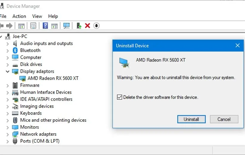 برای حذف درایور، روی گزینهی Uninstall Device در پنجرهی Properties کلیک کنید تا پنجرهی دیگری با نام Confirm Device Uninstall برای شما به نمایش در بیاید. بسته به درایور مورد نظر، این پنجره ممکن است دارای گزینهی Delete the driver software for this device باشد. در صورت مشاهدهی این گزینه، OK را بزنید.