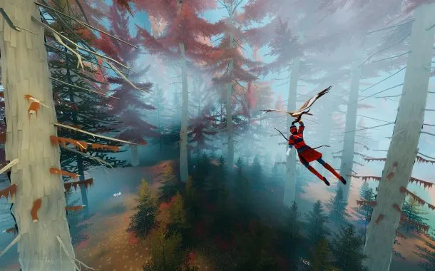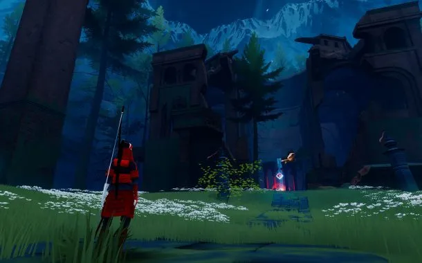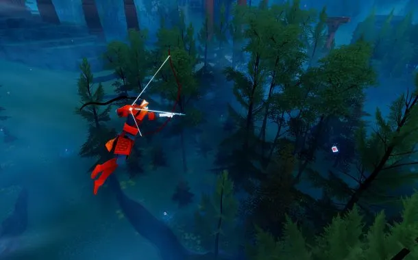 یکی از برجستهترین جنبههای The Pathless طراحی هنری آن است. بازی از نظر بصری شگفتانگیز است، با چشماندازهای اترال و بافتهای دستنقاشی شده که دنیایی ایجاد میکنند که هم خیالی و هم واقعی به نظر میرسد. طراحی محیط به شدت از طبیعت الهام گرفته است، با درختان بلند، غارهای عمیق و معابد درخشان که در سراسر جهان پخش شدهاند. استفاده از نورپردازی به خصوص قابل توجه است، با تغییر رنگهای آسمان و تعامل میان نور و سایه که به جو اسرارآمیز و حیرتانگیز دنیای بازی افزوده است.