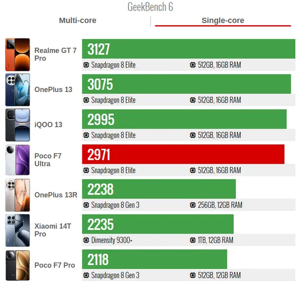 بنچمارک پوکو F7 اولترا لو رفت؛ قدرتنمایی پوکو در مقابل بهترینها