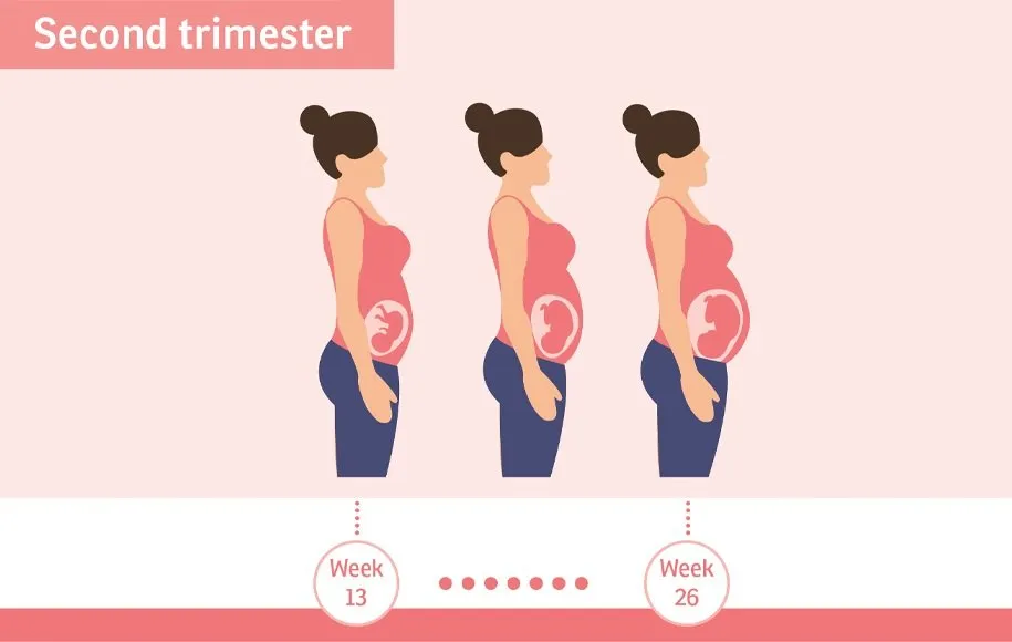 در طول سه ماههی دوم هم بدن مادر و هم بدن نوزاد به رشد خود ادامه میدهد و برآمدگی شکم به شکل قابل توجهی خود را نشان میدهد. همچنین در این دوره دیگر خبری از تهوع صبحگاهی نخواهد بود یا به حداقل میرسد و سینهها هم دیگر درد شدیدی ندارند. این تغییرات را میتوان به کاهش سطح هورمون گنادوتروپین جفتی انسانی و تنظیم سطح هورمونهای استروژن و پروژسترون نسبت داد. در زیر به لیستی از تغییرات و علائمی که ممکن است در سه ماهه دوم برای مادر رخ دهد اشاره شده است: