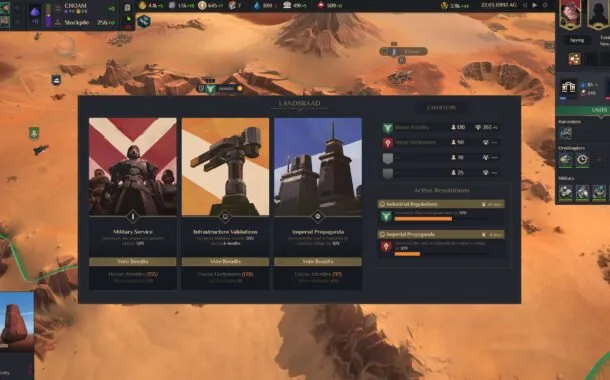 شما باید وجود کرمها را در نظر داشته باشید. پس منطقه خود را به گونهای بسازید که این موجودات غول پیکر نتوانند به آن حمله کنند. از طرفی میتوانید از این کرمها برای از بین بردن دشمنان استفاده کنید. همینطور اینکه روش کلاسیک مبارزه عادی نیز وجود دارد و شما میتوانید به دشمنان حمله کنید تا کنترل منابع ادویه را در دست بگیرید.
