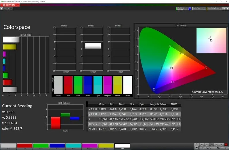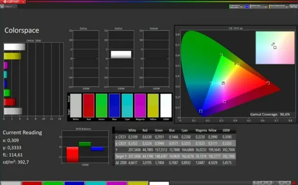 زمانی که یک تصویر خام سفید از صفحه نمایش تبلت پخش میشود، میزان شفافیت تصویر به ۴۰۱.۶ نیت هم میرسد. با تصاویر کوچکتر، این رقم به ۴۱۴ نیت هم افزایش پیدا میکند. بیشترین حد نور در این تبلت در تستهای ما ۴۱۸ نیت و کمترین میزان نور هم ۱.۵۴ نیت گزارش شده است.