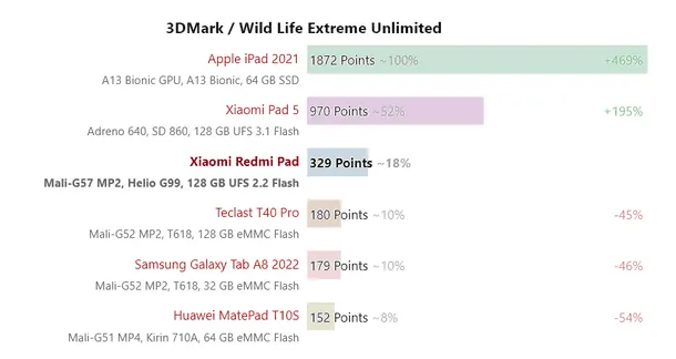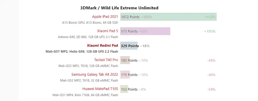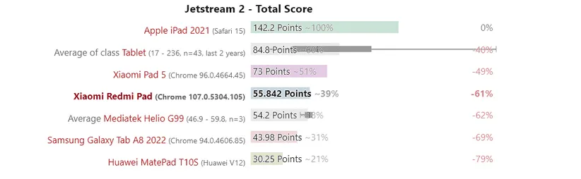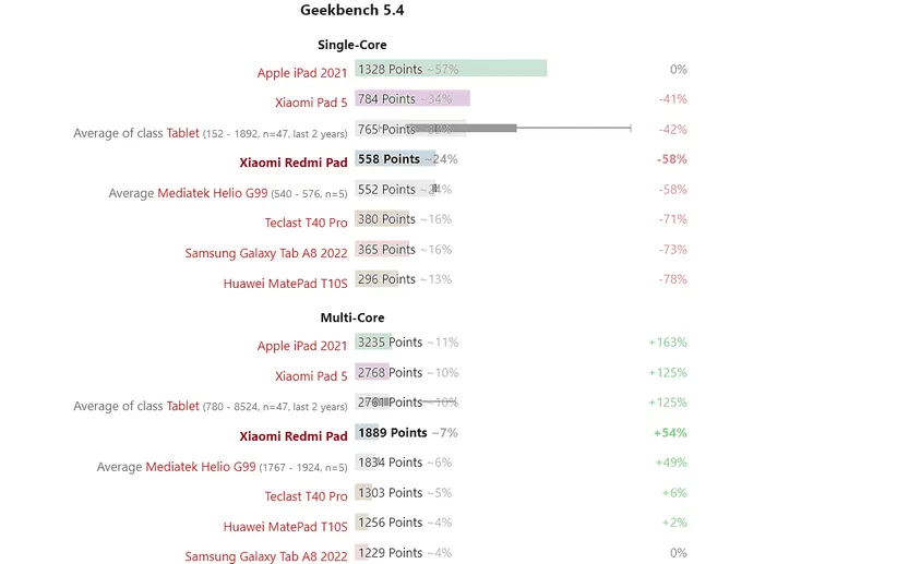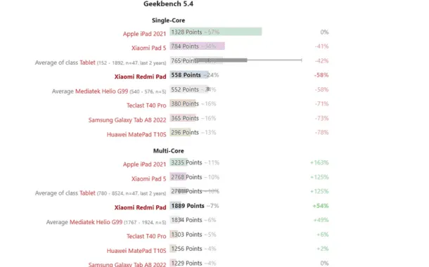 بر اساس تست بنچمارکهایی که انجام دادهایم، نتایج تبلت Redmi Pad از بسیاری از تبلتهای گران قیمت مشابه بهتر بود. در میان محصولات شیائومی شاید بتوان تبلت Xiaomi Pad 5 را بهتر از ردمی پد دانست؛ چراکه شیائومی پد ۵ از یک پردازندهی اسنپ دراگون ۸۶۰ استفاده میکند. همچنین اپل آیپد مدل ۲۰۲۱ هم عملکرد به مراتب بهتری نسبت به تبلت ردمی پد دارد.