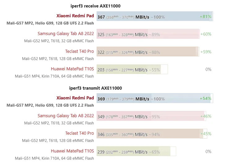 تبلت Redmi Pad دارای وای-فای ۵ و بلوتوث ۵.۳ است. این دستگاه فاقد NFC یا WWAN است. همچنین ماژول GPS هم ندارد. با این حال، نقل و انتقال سرعت با اتصال وای-فای با ثبات بوده و این تبلت توانسته با استاندارد وای-فای ۵ عدد ۳۶۹ مگابایت بر ثانیه را رقم بزند. کمترین سرعت اینترنت مربوط به ابتدای تست بود.