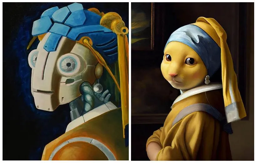 «دختری با گوشواره مروارید» در این پستها به عنوان نوزاد، مرد ریشدار مسن، اردک، سگ ، یا حتی یک ناوی آبی از فیلم «آواتار» دیده میشود. حتی در بعضی تصاویر او به دختری قرن بیست و یکمی تبدیل شده با ماسک صورت یا هدفون یا تلفن همراه. در اقدامی جالب یک هنرمند نقاشی ورمیر را روی صفحه اپلیکیشن تیندر گذاشته بود و این اثر را هم «به راست بکشید» (Swipe Right) نامید. احتمالا برخی از این تصاویر هم با ابزارهای هوش مصنوعی مانند Dall-E یا Midjourney خلق شدهاند.