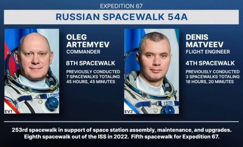 «اولگ آرتمیف» (Oleg Artemyev) و «دنیس ماتویف» (Denis Matveev) فضانوردان آژانس فضایی روسیه، روز جمعه (شنبه به وقت ایران) با یک راهپیمایی فضایی تازه، کار نیمهتمام خود را در بیرون از ایستگاه فضایی بینالمللی تکمیل کردند.