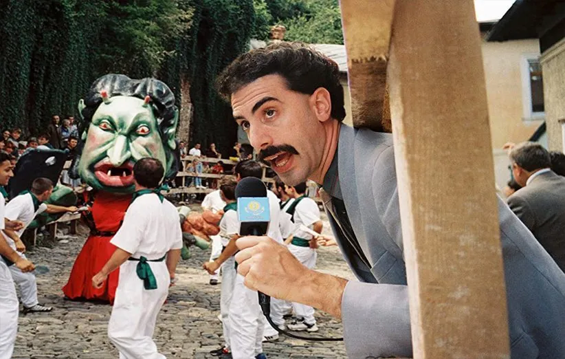 شوخی با جهان سوم و تقابل یک کشور جهان سوم با یک کشور پیشرفته، موقعیتهای خیلی جالبی را خلق کرده که کمتر در فیلم دیگری شاهدش بودهایم. بارون کوهن خیلی صریح و رک با نام بردن از کشور قزاقستان، خیلی به باورپذیر کردن شوخیهای فیلم کمک کرده است. تا پیش از این، کمتر کمدینی چنین جسارتی داشته تا با نام بردن از یک کشور حقیقی، مردمان آن کشور را عقبمانده و خرافاتی نشان دهد.
