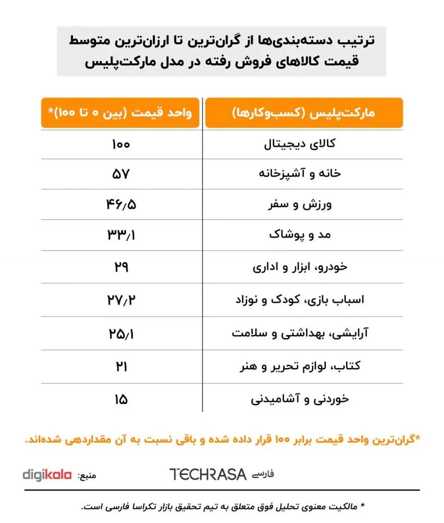 ترتیب دستهبندیها در قیمت کالاهای فروش رفته در مدل مارکتپلیس