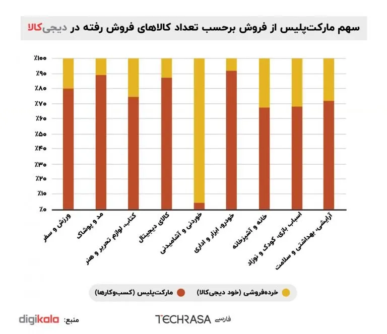 چه تعداد از کسبوکارهای مارکتپلیس دیجیکالا، برندهای ایرانی هستند؟