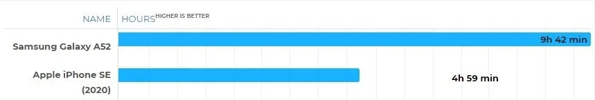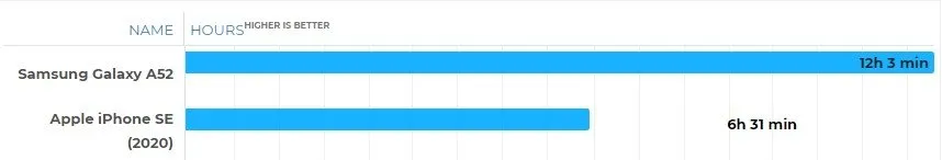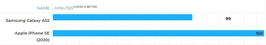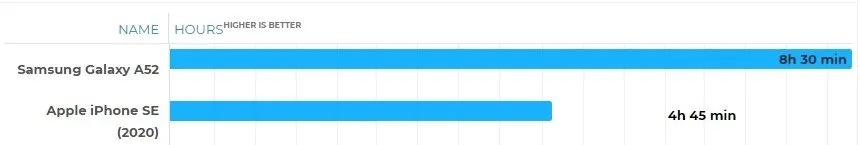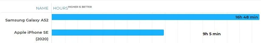 گلکسی A52 شاید شما را مجبور کند با تنظیمات گرافیکی پایین، بازی دلخواه خود را انجام دهید، اما طول عمر باتری آن بسیار بالاتر است و مجبور نخواهید بود چند بار در طول روز آن را به خاطر استفادهی سنگین شارژ کنید. بنابراین به نظر میرسد در مجموع حتی آیفون SE هم نتواند رقیب خوبی برای گلکسی A52 باشد. هرچند برای آن دسته از کاربرانی که از اکوسیستم اپل استفاده میکنند و به محصولات این شرکت علاقهمند هستند، منطقا آیفون انتخاب بهتری است.