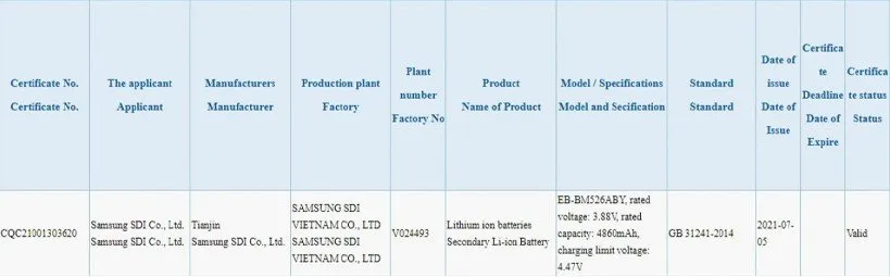 لازم به ذکر است اطلاعاتی که در رابطه با باتری گلکسی M52 5G در اختیار داریم به لطف لیست 3C است که البته در آن، روبهروی ظرفیت باتری عدد 4860 میلیآمپر ساعت ذکر شده که میزان حداقلی ظرفیت باتری است و معمولا از آن بهعنوان 5000 میلیآمپر ساعت یاد میشود.