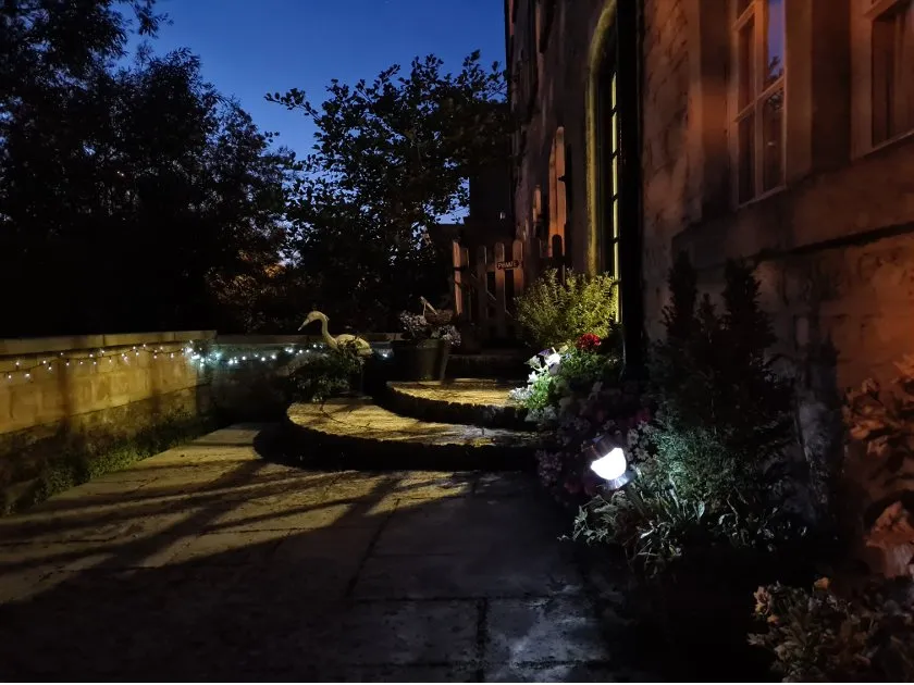 در شرایطی که نور بسیار کمتری وجود داشته باشد، نماینده سونی از لحاظ محدوده دینامیکی و نمایش رنگها، عملکرد ظاهرا بهتری دارد. این موضوع را میتوانید به خوبی از رنگ گل و گیاه متوجه شوید. در طرف مقابل اس 20 پلاس توانست اثرات نور گرم را بیشتر کنترل کند و در واقع تصویر سردتری را ثبت کند.