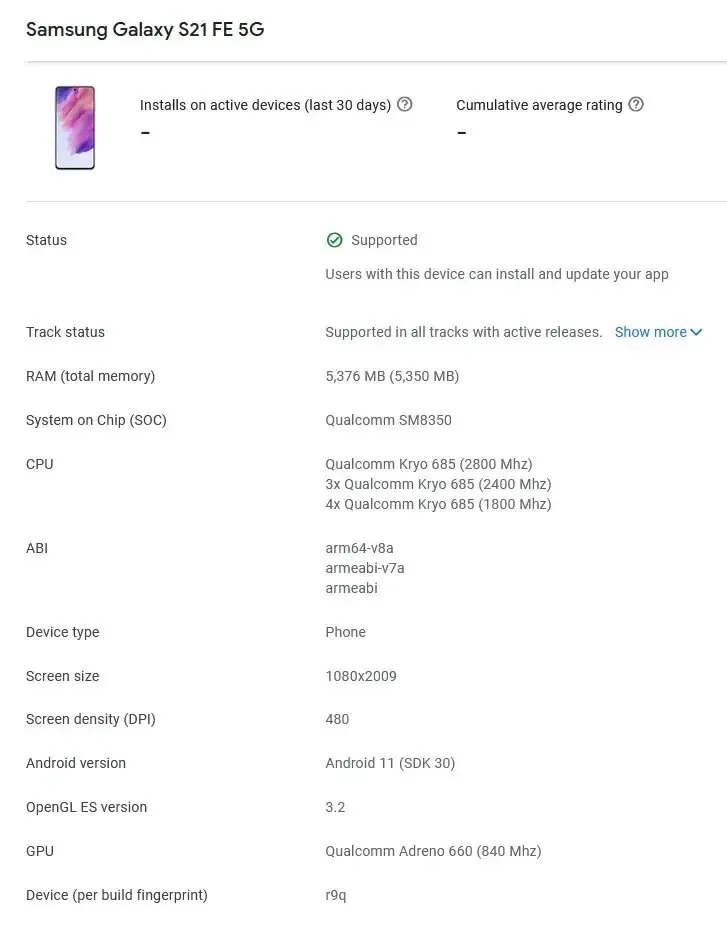 مشخصات فنی گلکسی S21 فن ادیشن در کنسول گوگلپلی تایید شد