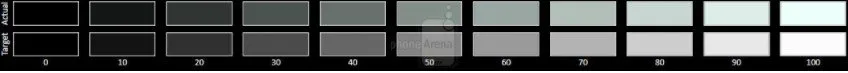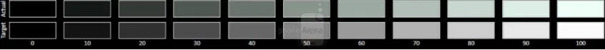 میتوانید میزان کیفیت نمایشگر این دو گوشی را در نمایش دقیق رنگ و نمایش رنگ خاکستری در زیر مشاهده کنید. در تصاویر زیر هرچه تفاوت بین دو رنگ کمتر باشد، نشاندهندهی عملکرد بهتر گوشی در آن زمینه است.