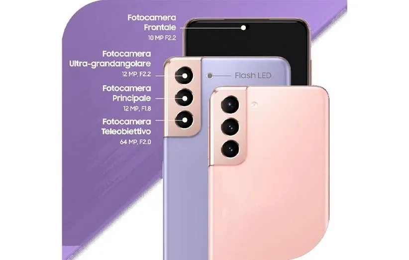 - گلکسی S21: دوربین اصلی 12 مگاپیکسلی، تلهفوتوی 64 مگاپیکسل، فوق عریض 12 مگاپیکسلی