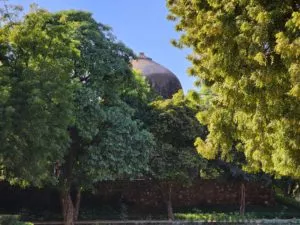 بیایید اندکی وضعیت را برای گلکسی S22 اولترا سختتر کنیم. قصد داریم با این گوشی تصویری با زوم 100 برابری هم ثبت کنیم ببینیم آیا این محصول میتواند عملکرد خوبی از خود به نمایش بگذارد یا خیر. به مقبرهای که گنبد آن از پشت درختان بیرون آمده دقت کنید. فرض کنید پرندهی کوچکی روی آن نشسته باشد اما طبیعتا شما از این موضوع هیچ اطلاعی ندارید. البته تا وقتی که گوشی شما گلکسی S22 اولترا نباشد. در زوم 3 برابری که دوربین اپتیکال نخست وارد عمل میشود، تصویر خوبی ثبت شده، درختان رنگ خوبی دارند و جزئیات هم به بهترین شکل ممکن به نمایش در آمده است. اما مقبره چیز خاصی را به ما نمیفهماند.