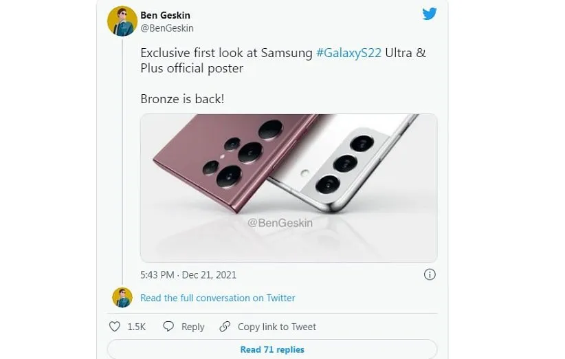 چه سامسونگ از قدرتمندترین و بهترین مدل از سری پرچمدار S22 خود با نام گلکسی S22 نوت نام ببرد یا نبرد، این گوشی از نظر ماهیت جانشین گلکسی نوت 20 خواهد بود و این دقیقا چیزی است که طراح رندرهای مفهومی، «بن گسکین»، دوباره به ما یادآوری کرده و پوستری را از آن را در کنار S22 پلاس به اشتراک گذاشته است. قابل توجهترین نکته در مورد پوستر S22 اولترا رنگ برنزی آن است که ما را به یاد گلکسی S20 نوت میاندازد. همچنین باید خاطر نشان کرد که رنگ برنزی این گوشی طرفداران زیادی دارد و اما طبق آخرین شایعات سامسونگ گلکسی S22 اولترا را با این رنگ عرضه نخواهد کرد.