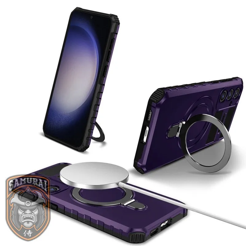یکی دیگر از کاورهای جذاب سامورایی، مدل Magsafe Stand است که ویژگیهای متنوعی را در اختیار کاربران قرار میدهد. اول از همه باید به وزن 50 گرمی این محصول اشاره کنیم که شاید در اولین روزهای استفاده، گوشی را برای کاربران سنگین کند، اما نگران این موضوع نباشید چرا که خیلی زود به این وزن عادت خواهید کرد. این لوازم جانبی برتر گلکسی S23 FE سامسونگ، از پلاستیک سخت و TPU تولید شده که مقاومت و دوام بسیار خوبی در برابر ضربات و خطوخشها از خودش نشان میدهد. این کاور محافظ سامورایی هم از دوربینهای گوشی به خوبی مراقبت میکند، لبههای برجستهای دارد تا در صورت قرار دادن گوشی روی زمین آسیبی به نمایشگر وارد نشود و مانع از ایجاد خطوخش روی پنل گوشی میشود.