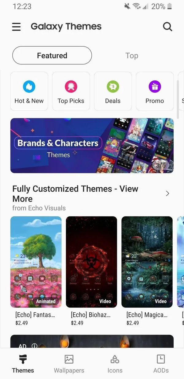 در بخش طراحی، هر دو رابط کاربری به شما ابزار و امکانات زیادی جهت شخصیسازی میدهند تا گوشی را به صورت کامل مطابق سلیقه خود تغییر دهید. سامسونگ برای این منظور گلکسی Theme را در نظر گرفته که یک فروشگاه جهت خرید و دانلود تصاویر زمینه و تمهای گوناگون است. از آنجایی که رابط کاربری جدید سامسونگ از قابلیت نمایشگر همیشه روشن (Always on Display) پشتیبانی میکند، بنابراین بسیاری از تمهای این فروشگاه برای این صفحه طراحی شدهاند و با اعمال یکی از آنها خواهید دید که تقریبا تمام بخشهای رابط کاربری گوشی تغییر میکند.