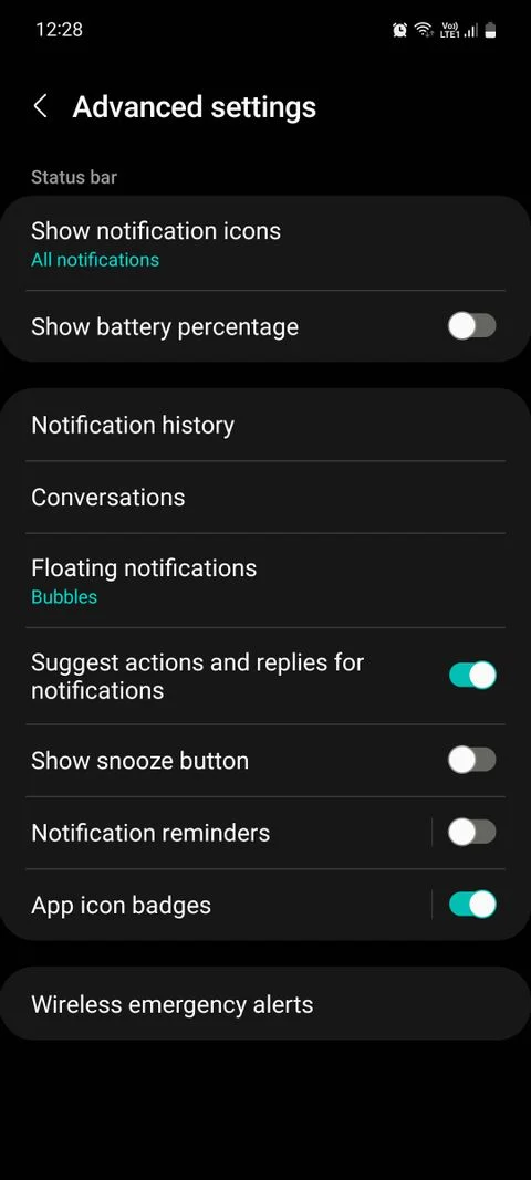 - وارد منوی تنظیمات گوشی شوید و سپس بخش Notification و پس از آن گزینهی Advanced settings را انتخاب کنید.