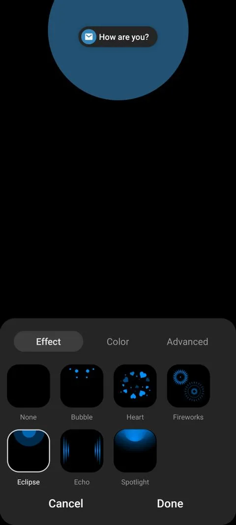 - در این بخش میتوانید افکتها، رنگ، میزان شفافیت و مدت زمان پیامهای پاپآپ را در هنگام روشن یا خاموش بودن نمایشگر مشخص کنید.