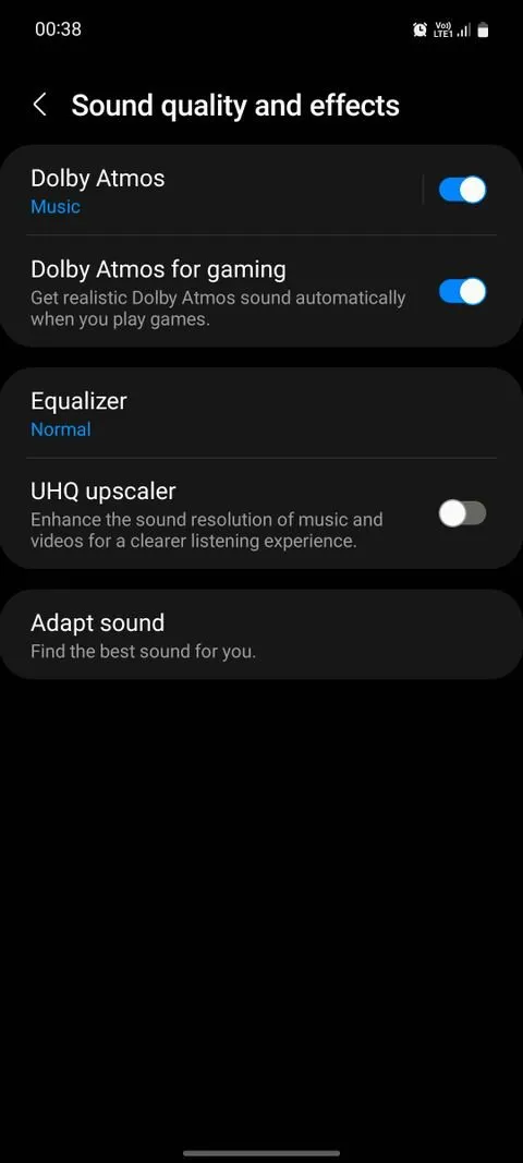 - UHQ upscaler: این گزینه رزولوشن موسیقی شما را افزایش میدهد تا جزئیات و وضوح آن بهبود یابند. البته باید بدانید که این ویژگی فقط برای هدفونهای باسیم در دسترس است، اما اگر گوشی شما جک ۳.۵ میلیمتری ندارد میتوانید با استفاده از یک تبدیل USB-C به جک ۳.۵ میلیمتری صدا از این ویژگی برای هدفونهای باسیم خود استفاده کنید.