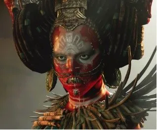 تصویر۸. «آتش سرخ»، رهبر گروه آدمخوار یاکسیل که زود متحد لارا خواهد شد، نشان میدهد که چطور بازیسازان خیالات مخاطب غربی دربارهی آدمخواری قبایل بومی را دستمایه قرار داده تا شخصیتی عجیب و وحشتناک برای آنها بسازد که با کلیشههای ذهنیشان همسو باشد.