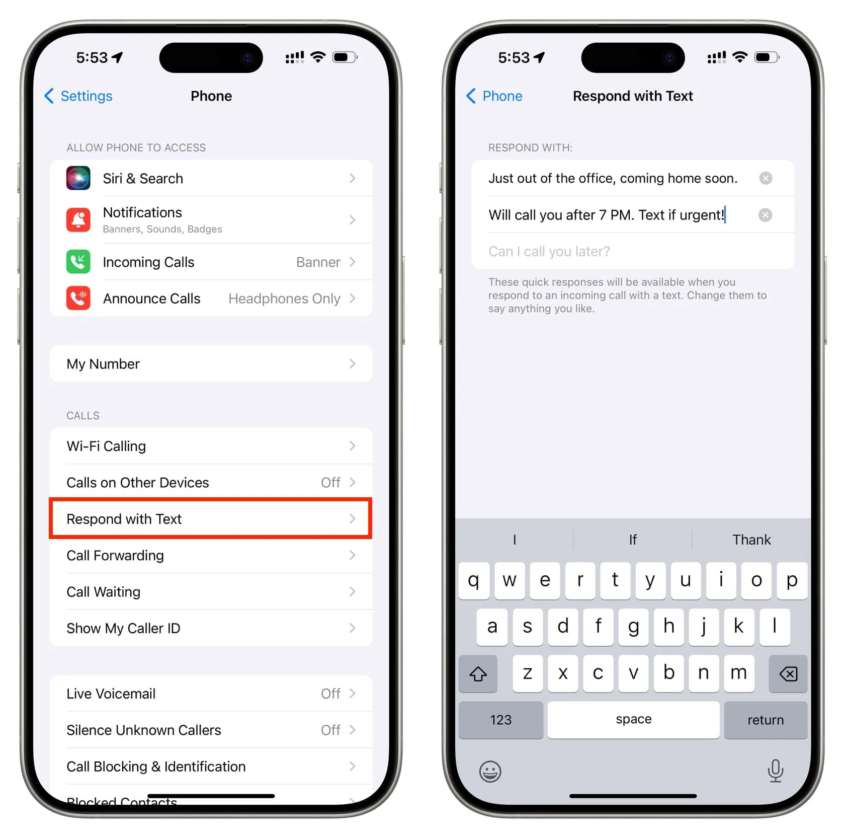 آیفون این امکان را به شما میدهد که هنگام عدم پاسخگویی به تماسها، پیامکی از پیش تنظیم شده به تماس گیرنده ارسال کنید. برای ایجاد این قابلیت، مراحل زیر را انجام دهید: