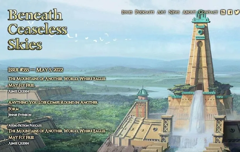 اولین وبسایتی که در این مقاله قصد معرفی آن را داریم، وبسایت Beneath Ceaseless Skies است. این سایت در واقع یک مجلهی آنلاین است که به انتشار داستانهای تخیلی و ماجراجویی ادبی شهرت دارد. اگر به طور کلی با مجلات آنلاین آشنایی ندارید، باید بگوییم این مجلات خیلی تفاوتی با مجلات عادی ندارند. تنها فرقشان نوع دسترسی به آنها است که در این وبسایت به صورت آنلاین این امکان برای شما فراهم شده است.