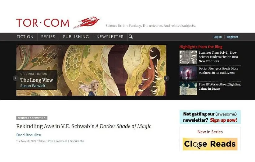 با این حال اگر به دنبال داستان خاصی نیستید، میتوانید بدون اعمال کردن هیچ تنظیمات خاصی در این وبسایت به بررسی جدیدترین محتواهای منتشر شده بپردازید و در صورت لزوم آنها برای خواندن انتخاب کنید. داستانهای اورجینال جدید هر چهارشنبه منتشر میشوند، بنابراین میتوانید هر هفته مطالب جدید را در Tor.com مطالعه کنید. اگر به طور کلی علاقمند به داستانهای تخیلی هستید، بخشهای دیگر این وبسایت میتواند موارد جالبی برای ارائه به شما داشته باشد. برای مثال، علاوه بر داستانهای فانتزی مقالات زیادی در مورد این ژانر در این سایت وجود دارد که میتوانید از آنها نیز بهره ببرید.