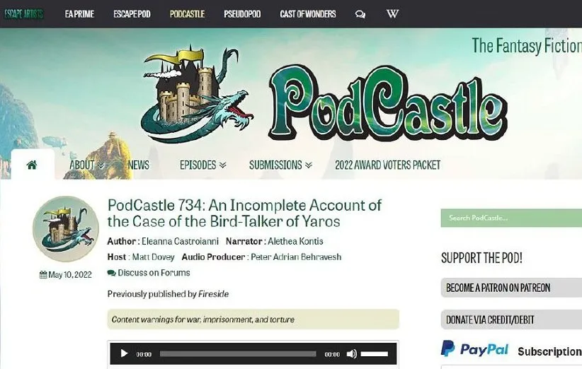 اگر عاشق داستانهای کوتاه تخیلی هستید اما زمان لازم برای خواندن نسخهی فیزیکی کتابها را ندارید، وبسایت PodCastle انتخاب خوبی برای شما است. همانطور که از نام PodCastle پیداست این یک مجلهی آنلاین نیست، بلکه وبسایت ارائهدهندهی پادکستهای صوتی است.